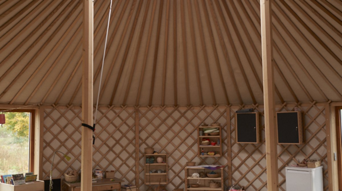 When constructing the kindergarten, a special focus was placed on the use of sustainable, natural and durable building materials. Mayr-Melnhof Holz Reuthe provided around 9 cubic metres of PEFC-certified glued laminated timber for the construction of the two yurts, as well as special components for the timber frame.