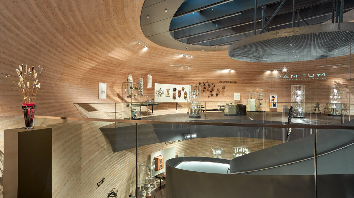 Das Paneum in Asten (AT) ist ein spektakulärer Holz-Sonderbau, der einen Einblick in die Welt des Brotes gibt. 1.200 Exponate bringen die Besucherinnen und Besucher zum Staunen. Aber auch der quaderförmige Betonsockel und die spiralförmig angelegte Treppe, die ins Innere der verzahnten Holzstruktur führt, beeindrucken. Die freitragende Form wurde teils aus dem Zukunftsbaustoff Brettsperrholz MM crosslam errichtet, der von Mayr-Melnhof Holz erzeugt und geliefert wurde.