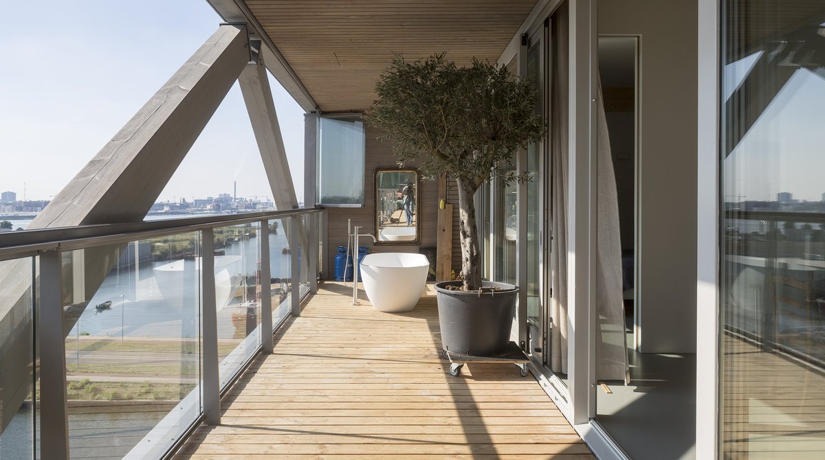 Der Komplex Patch 22 wird als Nullenergiegebäude bezeichnet. Darunter versteht sich eine Gleichstellung von Energieproduktion und -verbrauch. Darüber hinaus wurden die drei Faktoren Brandschutz, Schallschutz und Windlast ebenfalls berücksichtigt, sodass eine ideale Lösung bei der Wahl der Baumaterialien getroffen werden konnte. Das Mehrfamilienhaus gilt übrigens als höchstes Wohnhaus der Niederlande.