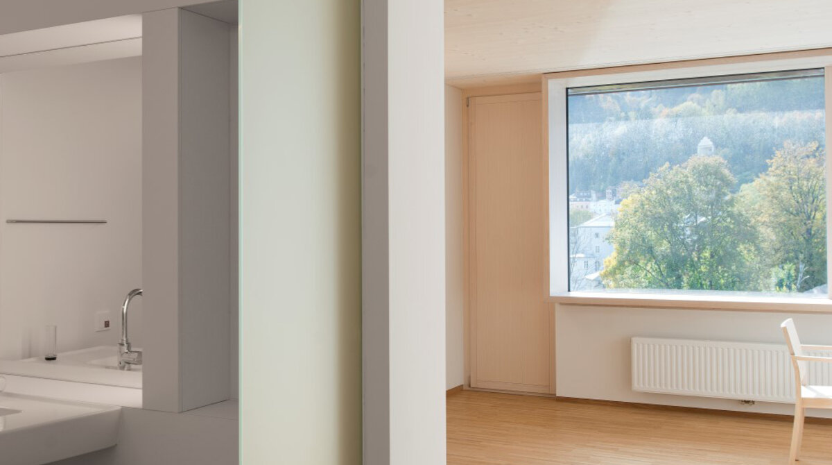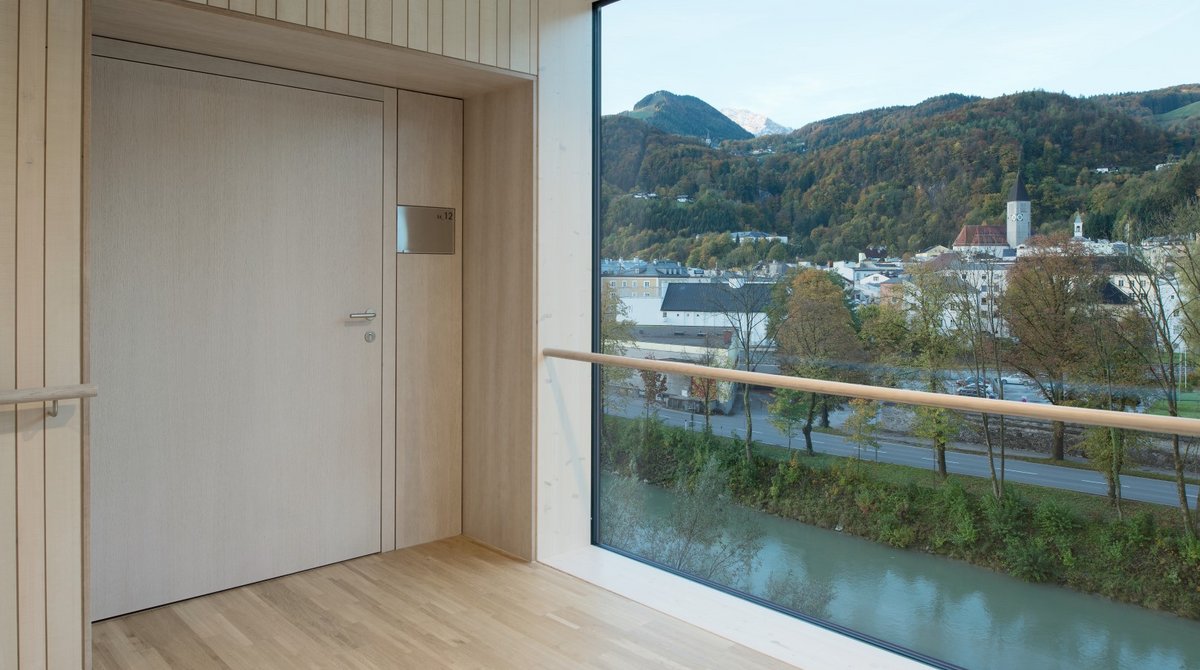 Seit Oktober 2013 bietet ein architektonisch und freiräumlich anspruchsvolles Seniorenwohnhaus die neue Heimat für betagte Menschen aus Hallein (AT) und den umliegenden Nachbargemeinden. Als der Neubau notwendig geworden war, stellte die Gemeinde Hallein die richtigen Weichen: Sie siedelte das Seniorenwohnhaus nicht in die Peripherie ab, sondern wollte es wieder am alten, zentral gelegenen Standort direkt am Stadtpark errichten. Dies bedeutete zwar für die Bauabwicklung eine Herausforderung, sicherte aber die größtmögliche Mobilität und städtische Integration von Haus und Bewohnerinnen bzw. Bewohnern. Städtebaulich knüpft der kürzere Flügel des Neubaus am gegenüberliegenden, so genannten „Ziegelstadel“ an und bildet ein Pendant zu dieser ehemaligen Lagerhalle der Halleiner Saline.