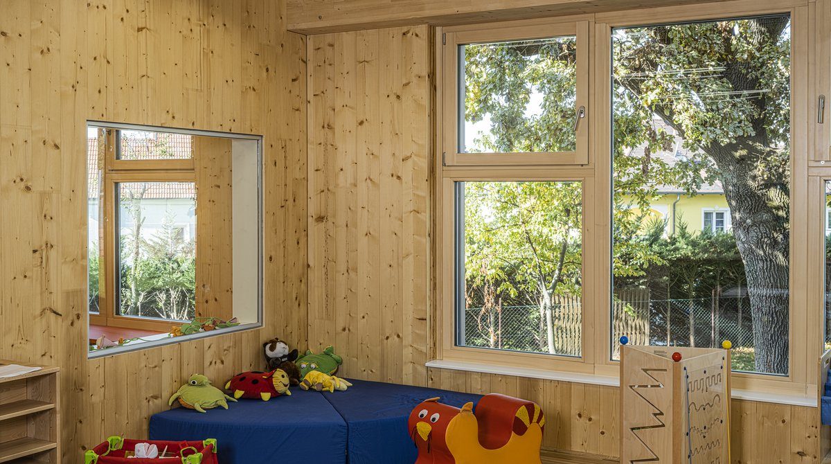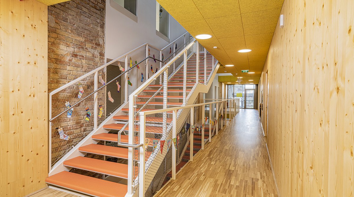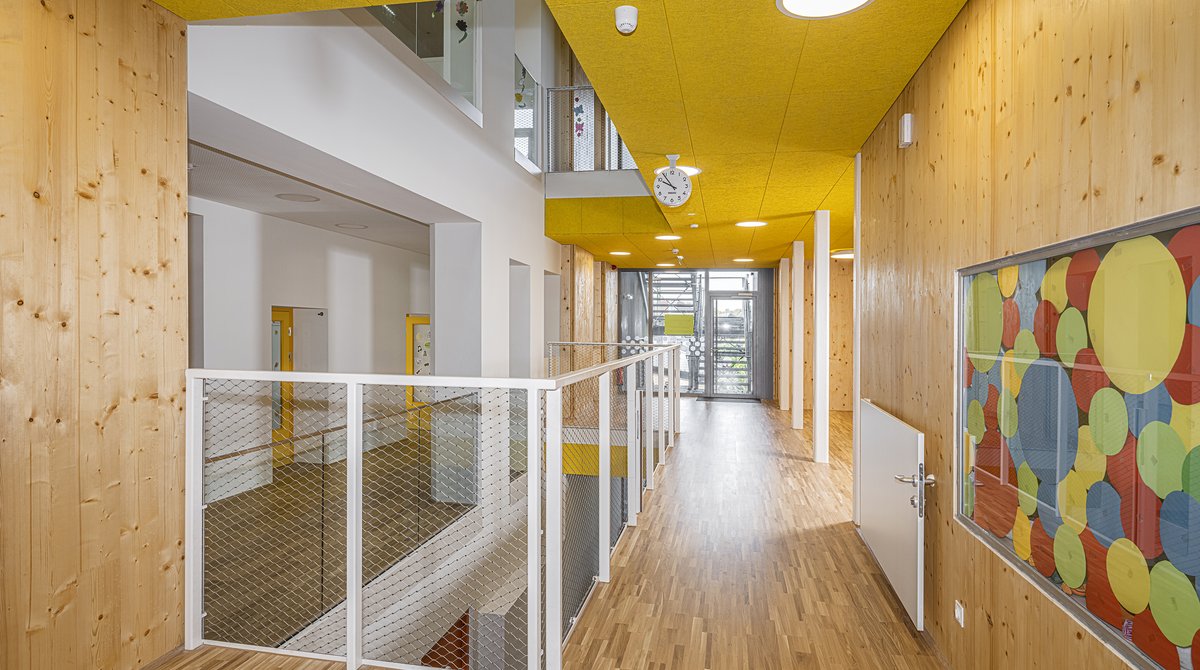 Eine kleine Gemeinde vor den Toren Wiens hat sich ganz den modernen Erkenntnissen über eine lernfördernde Umgebung verschrieben: Moosbrunn. Viel natürliches Licht für den Innen-Außen-Bezug, Blickbeziehungen zu Sitz-Liege-Lern-Landschaften sowie Rückzugs- und Gruppenangebote stehen für ein lebendiges Raumangebot, welches den Schulalltag mit Mehrgewinn ausstattet und Schule ganztagstauglich macht. Für die tragenden Wände verwendete man über 200 m³ PEFC-zertifizierte Brettsperrholzelemente MM crosslam von Mayr-Melnhof Holz. Zudem wurden über 670 m² XC® living Elemente unseres Joint Ventures MMK eingesetzt.
