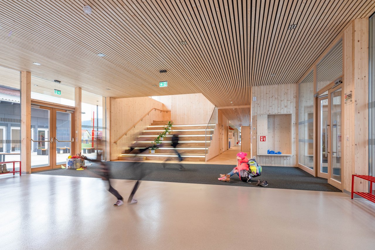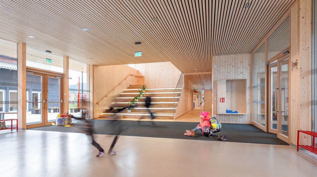 Der Neubau der Volksschule St. Marein im Mürztal (AT) ist ein Best-Practice Beispiel für den Einsatz von Holz im schulischen Bereich. Offen, selbstbewusst und flexibel – so gibt sich das Gebäude beim Betreten. Der professionelle, spielerisch leichte Umgang mit dem Ingenieurholzbau beeindruckt genauso wie der Dialog zwischen Innen- und Außenraum sowie die architektonische Klarheit.