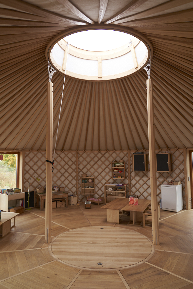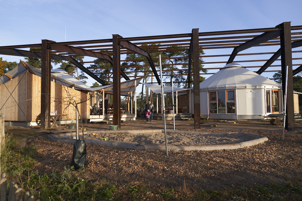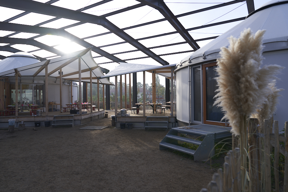 Bei der Konstruktion des Kindergartens wurde ein besonderer Fokus auf die Verwendung nachhaltiger, natürlicher und langlebiger Baumaterialien gelegt. Mayr-Melnhof Holz Reuthe stellte für die Errichtung der beiden Jurten rund 9 m3 PEFC-zertifiziertes Brettschichtholz sowie Sonderbauteile für das Holzständerwerk bereit.
